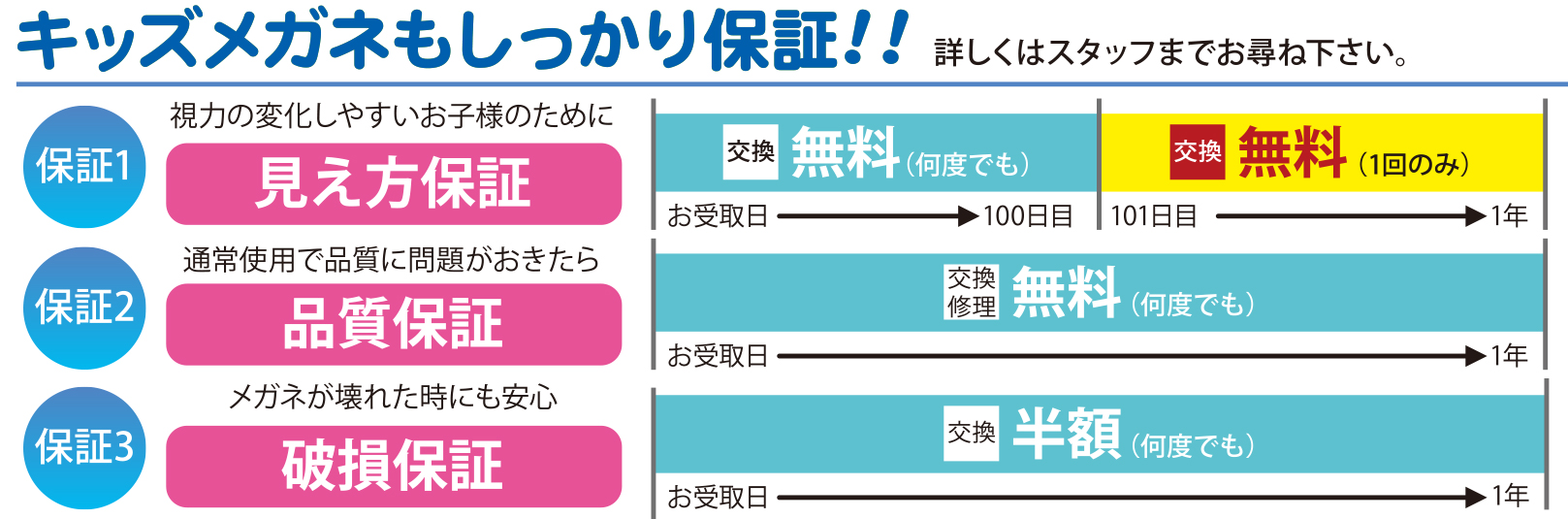 弾力性に優れたフレームや、割れにくいレンズを採用。遊び盛りのお子様でも安心してお使い頂けます。